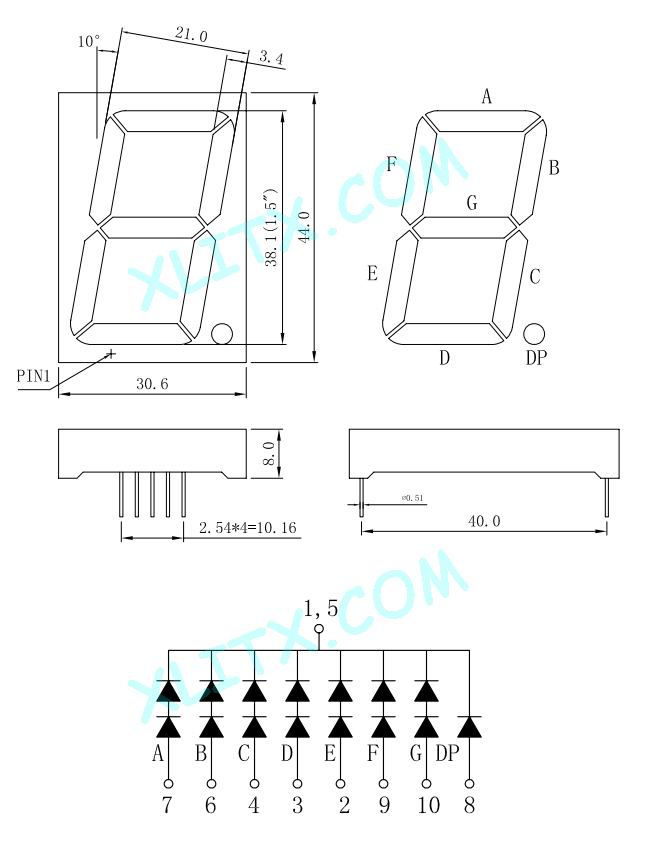 15102AB - 1.50-inch Blue 1-Digit CC LED 7-Segment Display