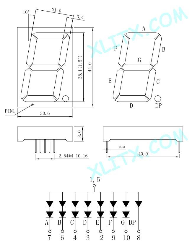 15102BS - 1.50-inch Red 1-Digit CA LED 7-Segment Display