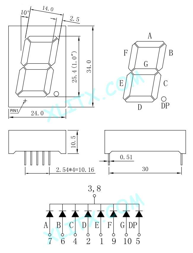 10016AGG - 1.00-inch Green 1-Digit CC LED 7-Segment Display