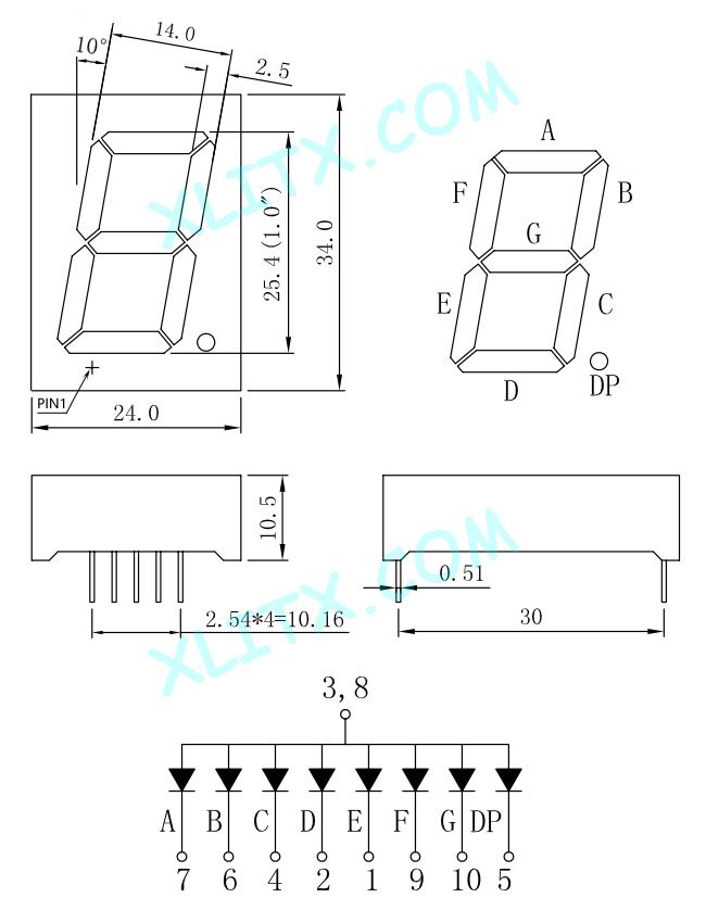 10016BB - 1.00-inch Blue 1-Digit CA LED 7-Segment Display