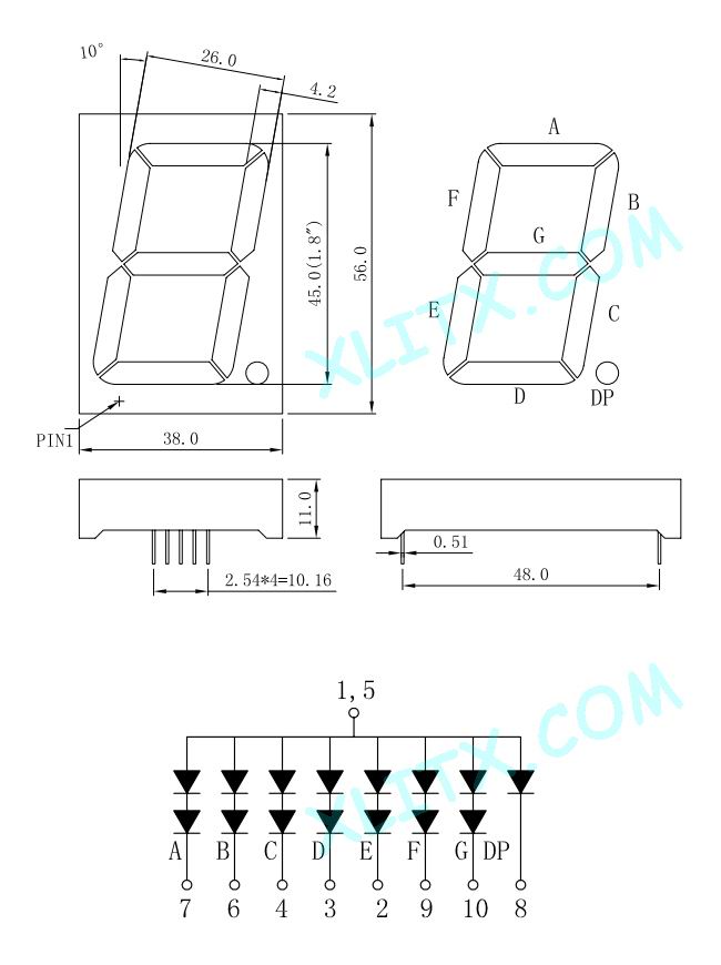 18101BS - 1.80-inch Red 1-Digit CA LED 7-Segment Display
