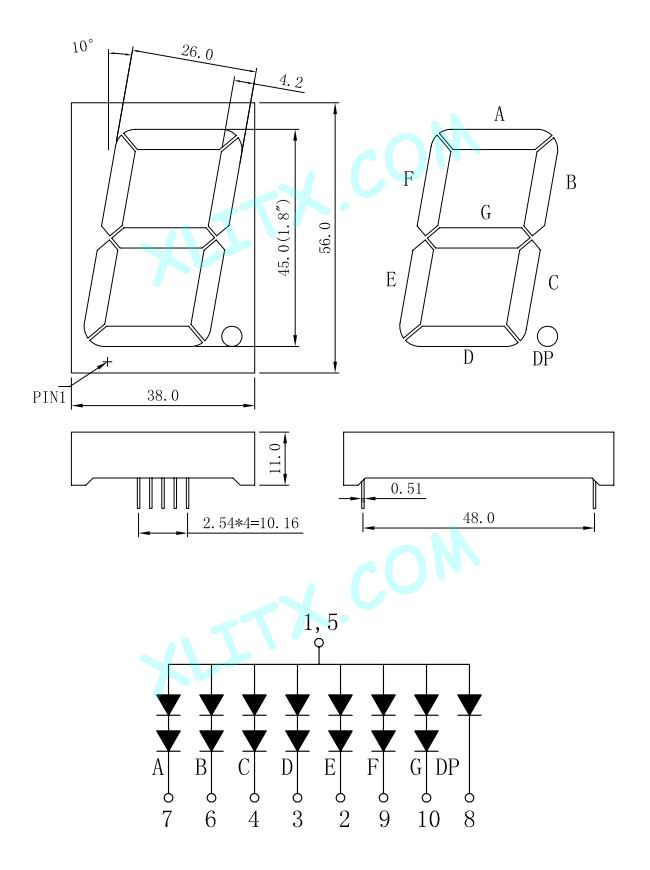 18102BB - 1.80-inch Blue 1-Digit CA LED 7-Segment Display